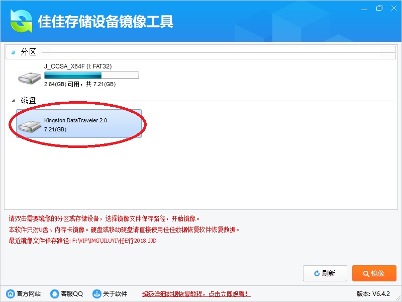 1、下载、安装、运行《佳佳存储设备镜像工具》,